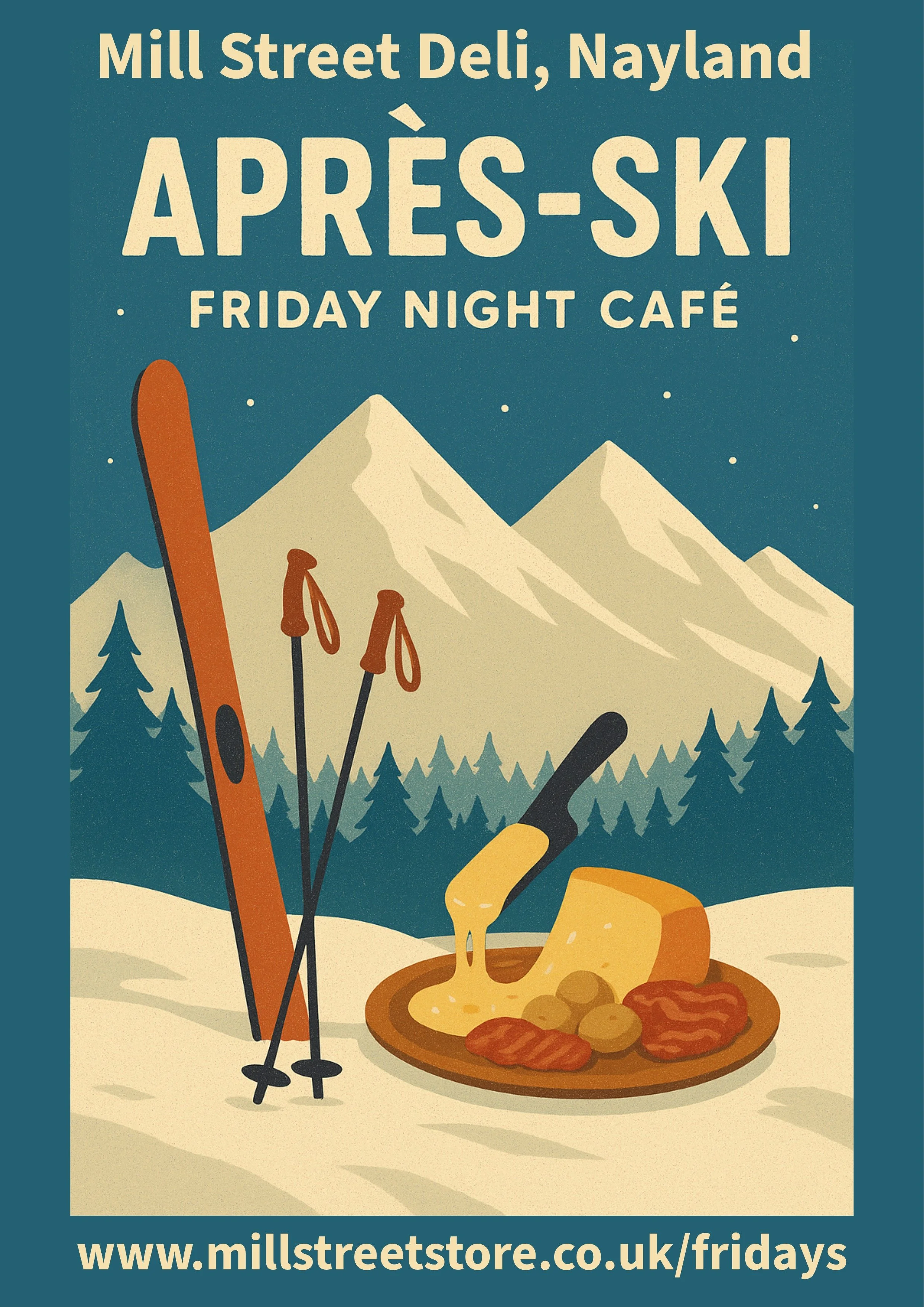 Using the best local, UK and European products from our deli, we’ll be serving up a mix of Apline inspired small plates including raclette, charcuterie & cheese platters and more.